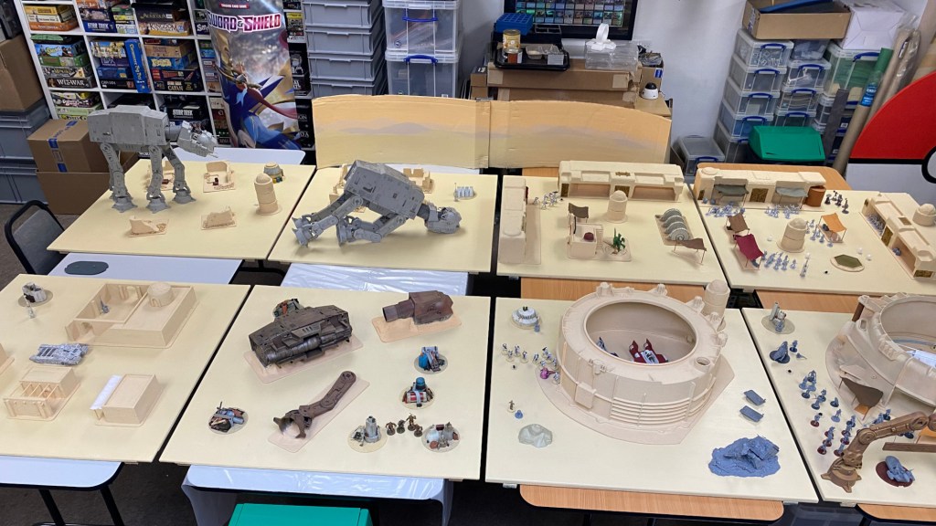 During the initial pandemic lockdown (April 2020 onwards), I began working on some terrain for Star Wars: Legion. A combination of factors – primarily nobody using the games room and not having to pack everything away every couple of days – allowed the project to get suitably out of hand and many customers will have seen this in various states of progress: